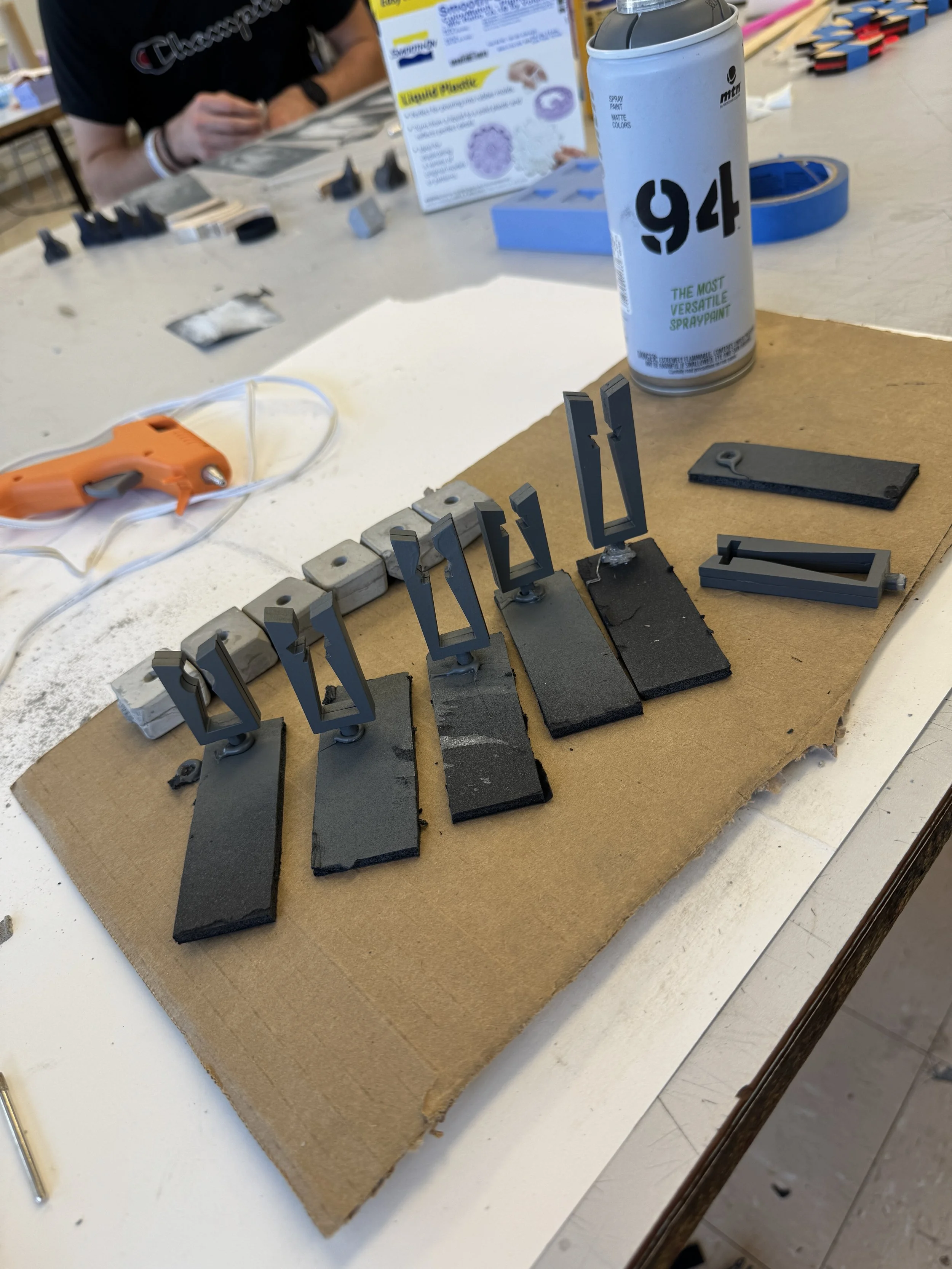 Laser cut acrylic pieces sanded before paint.