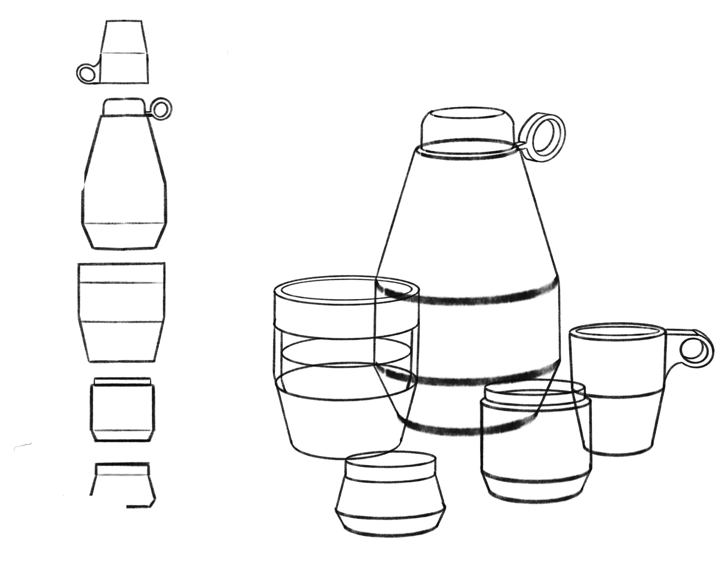 Exploratory cup set Sketches